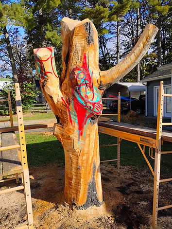 I am so grateful for all of the wood sculptures that bring joy to new hands, homes, and businesses nearby, and across many states. I am trying to increase my skills and approach to each new carving. Learning little by little with the power of " trial and error ". Enjoying the limitless potential of power carving, I can't wait to see what future sculptures come from my hands, and tools. Excited to bring joy to as many collectors as possible.